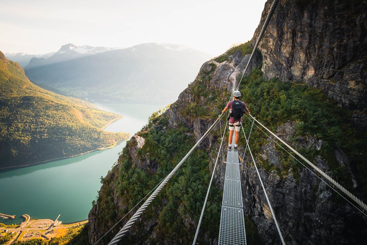 It isn’t easy to compete with the views from via ferrata Loen. You can see far into Lodalen, Lake Lovatnet, and the Innvikfjord.