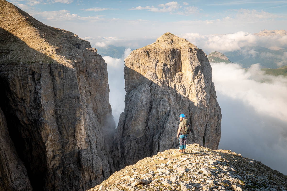 That’s it for scrambling! Now it’s time to get back to Passo Sella where you started. There is a long descent ahead, but the views will compensate for it. Take off your via ferrata gear and store it in your backpack, as you won’t need it on the descent.