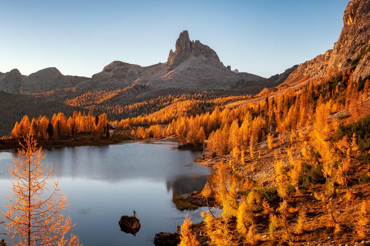 Last but not least, my personal favourite autumn photography spot in the Italian Dolomites is Lago Federa. This high alpine lake can be reached within a couple of hours of hiking along the Croda Da Lago circuit trail.